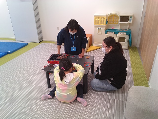 小学生の部では、広いホールを使ってキャッチボールをしたり、見たことのないブランコ(感覚遊具)に乗ってみたり、初めて見るカードゲームを一緒に説明書を読みながら遊んでみるなど、冬休み中のゆったりした時間の中で、親子で楽しんでいる様子がうかがえました♪