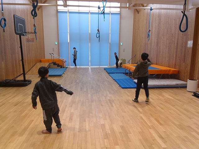 小学生の部では、広いホールを使ってキャッチボールをしたり、見たことのないブランコ(感覚遊具)に乗ってみたり、初めて見るカードゲームを一緒に説明書を読みながら遊んでみるなど、冬休み中のゆったりした時間の中で、親子で楽しんでいる様子がうかがえました♪