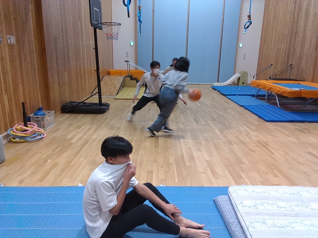 中高生向けの開放では、静内中学校、第三中学校の生徒が来てくれて、デイルームで勉強したりホールで体を動かしたり、職員も間に入って一緒にゲームをしたり、リニューアルした「もこもこ」で楽しんでいました♪